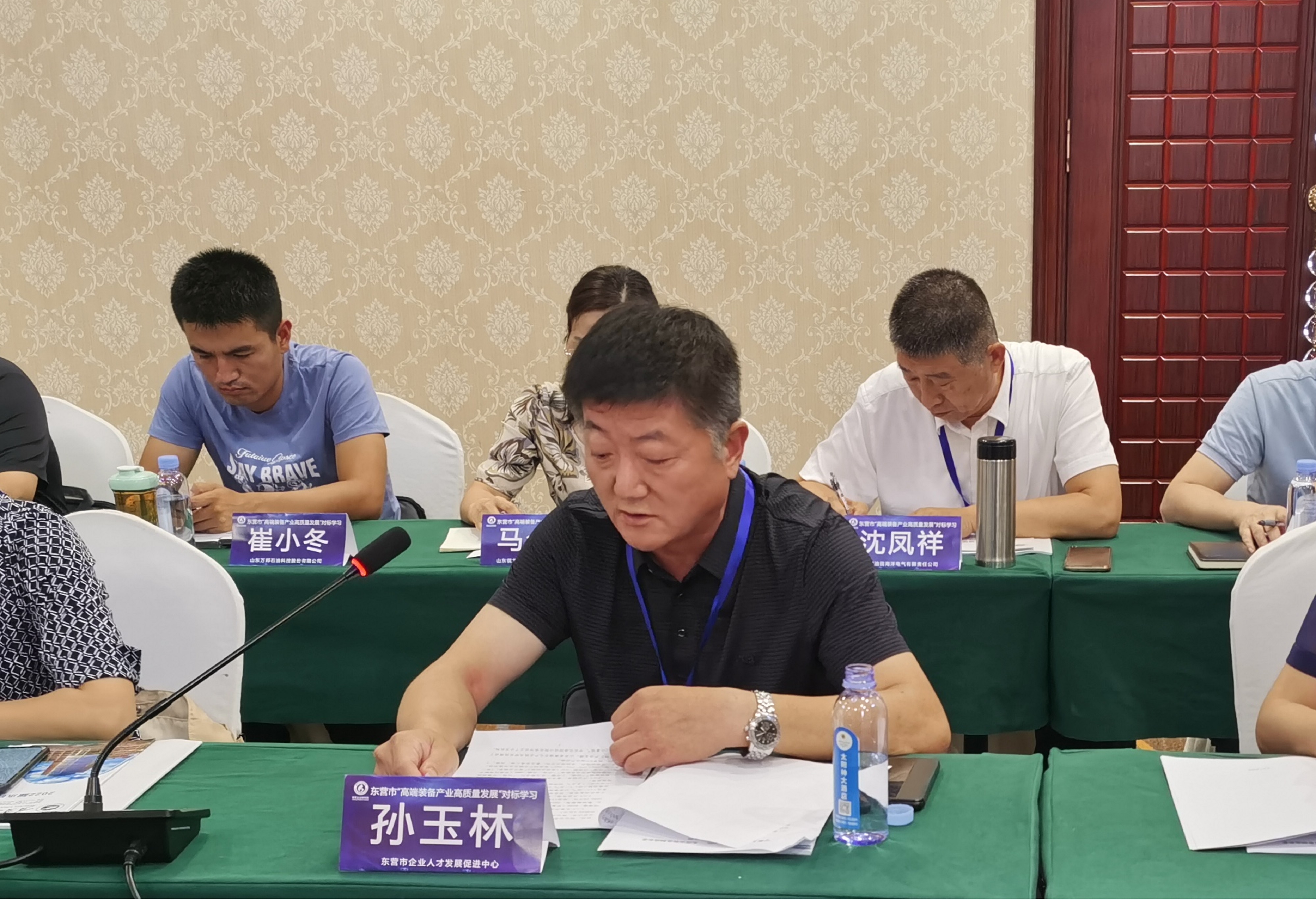 看完东营市宣传片,东营市企业人才发展促进中心主任孙玉林介绍了东营市工业经济情况。他讲到,东营市是国内最大的石油装备制造业基地,是第一家被中国石油和石油化工设备工业协会授予“中国石油装备制造业基地”称号的城市,石油装备产业为山东省现代优势产业、主导产业和特色产业集群,属于省市重点支持发展的高端装备制造业;橡胶轮胎产业是东营市传统优势产业,是全国乃至全球重要的橡胶轮胎生产和出口基地,有7家企业入围全球轮胎75强。