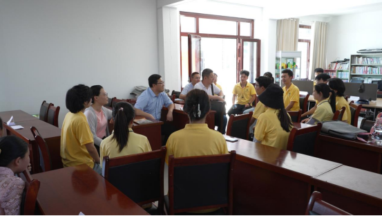 支教点的当地基层领导听闻学校来看望慰问学生,他们守候在支教点,与学校来的老师进行沟通交流。他们讲到,英国威廉集团青年学子冒着酷暑来到当地发挥自己的热情、才智,用心用情地在支持着当地的乡村振兴,在实现着青年学子的青春价值,对青年学子点赞和感谢。