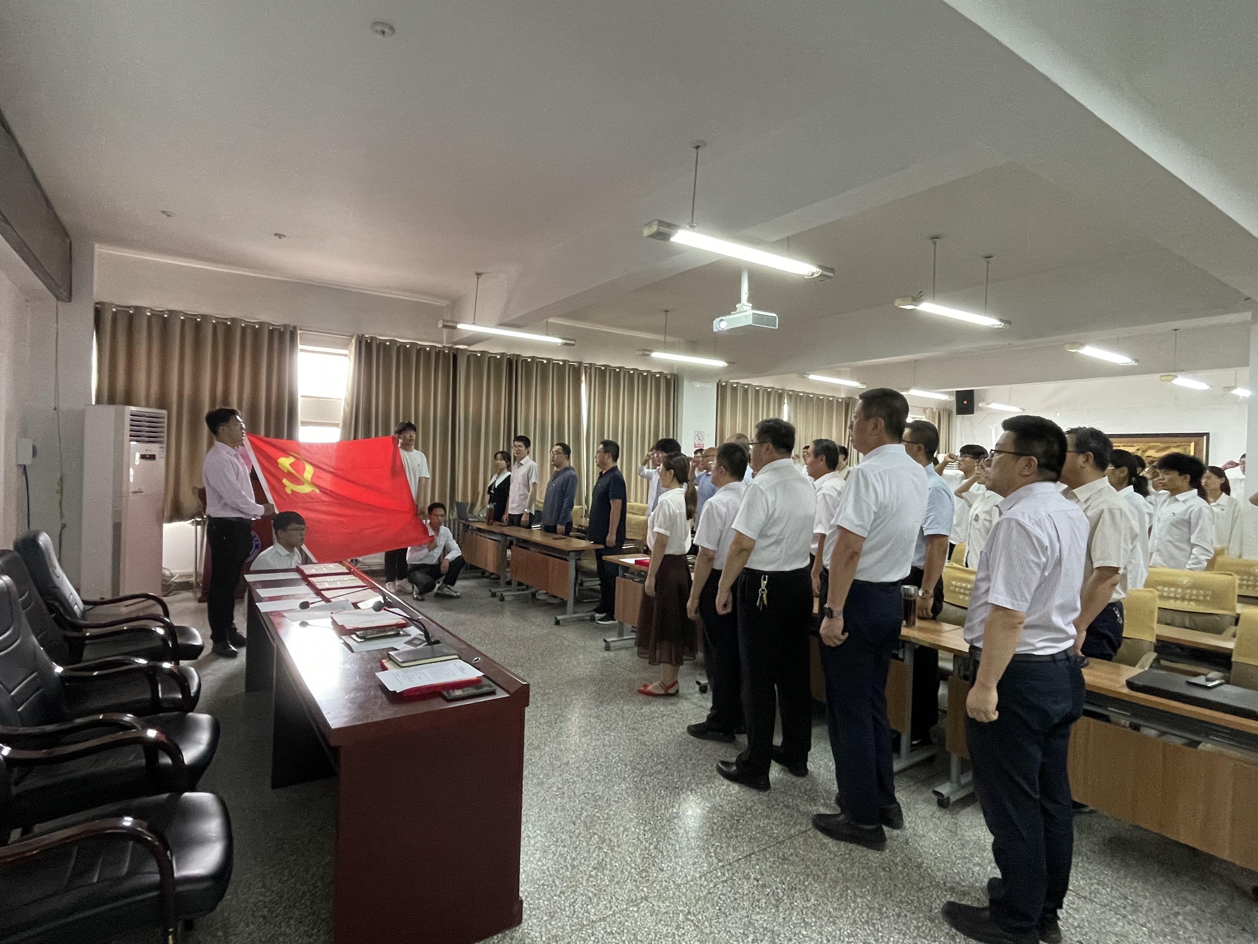 主题党日活动在庄严肃穆的国歌声中拉开帷幕,在鲜艳的中国共产党党旗下,新党员们和参加会议的党员师生们举起右拳,分别郑重宣誓和重温入党誓词,以铿锵有力的声音表达对党的忠诚、热爱和承诺。