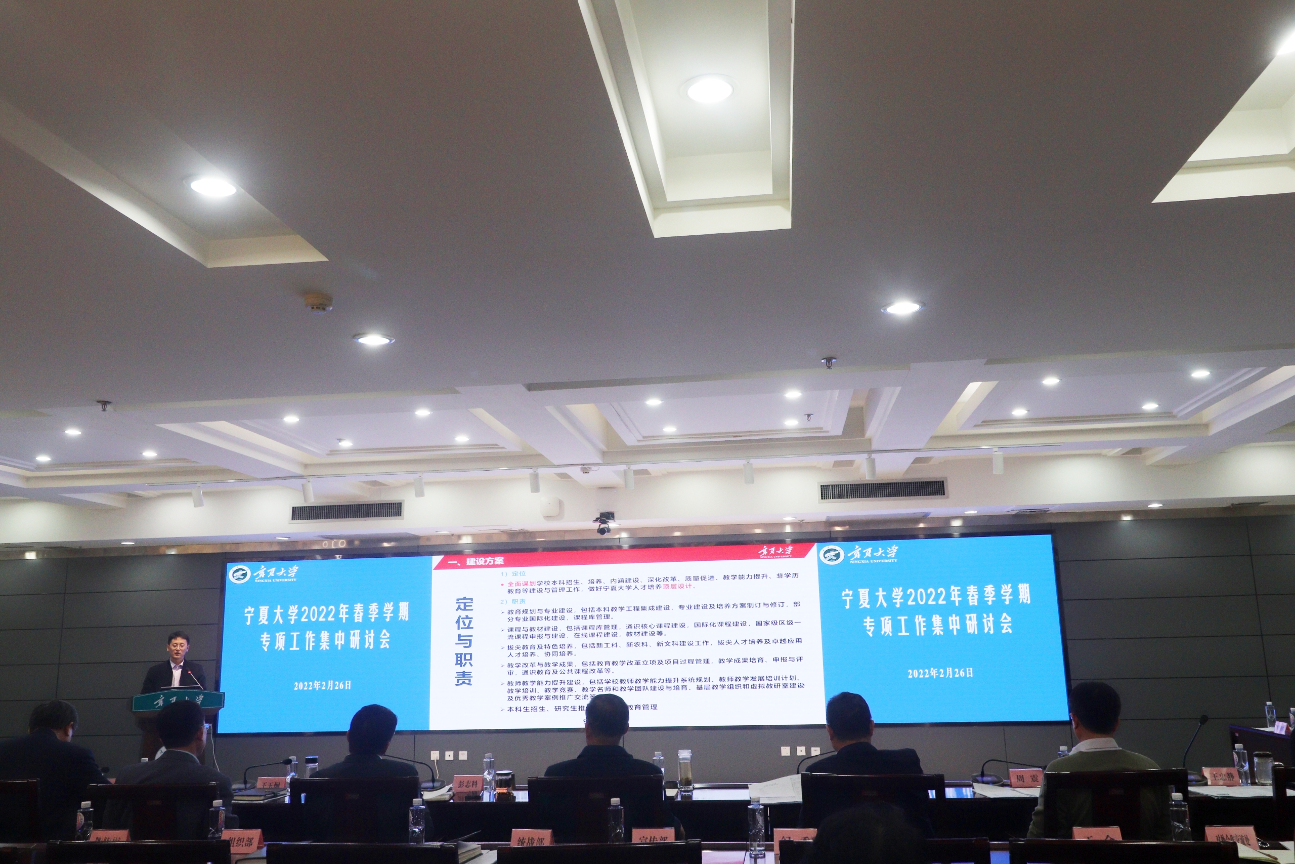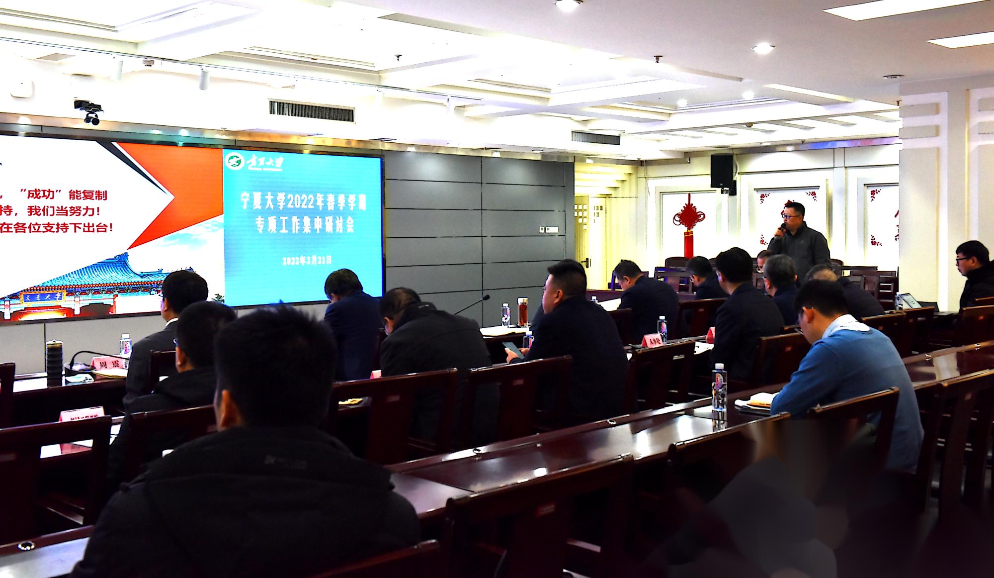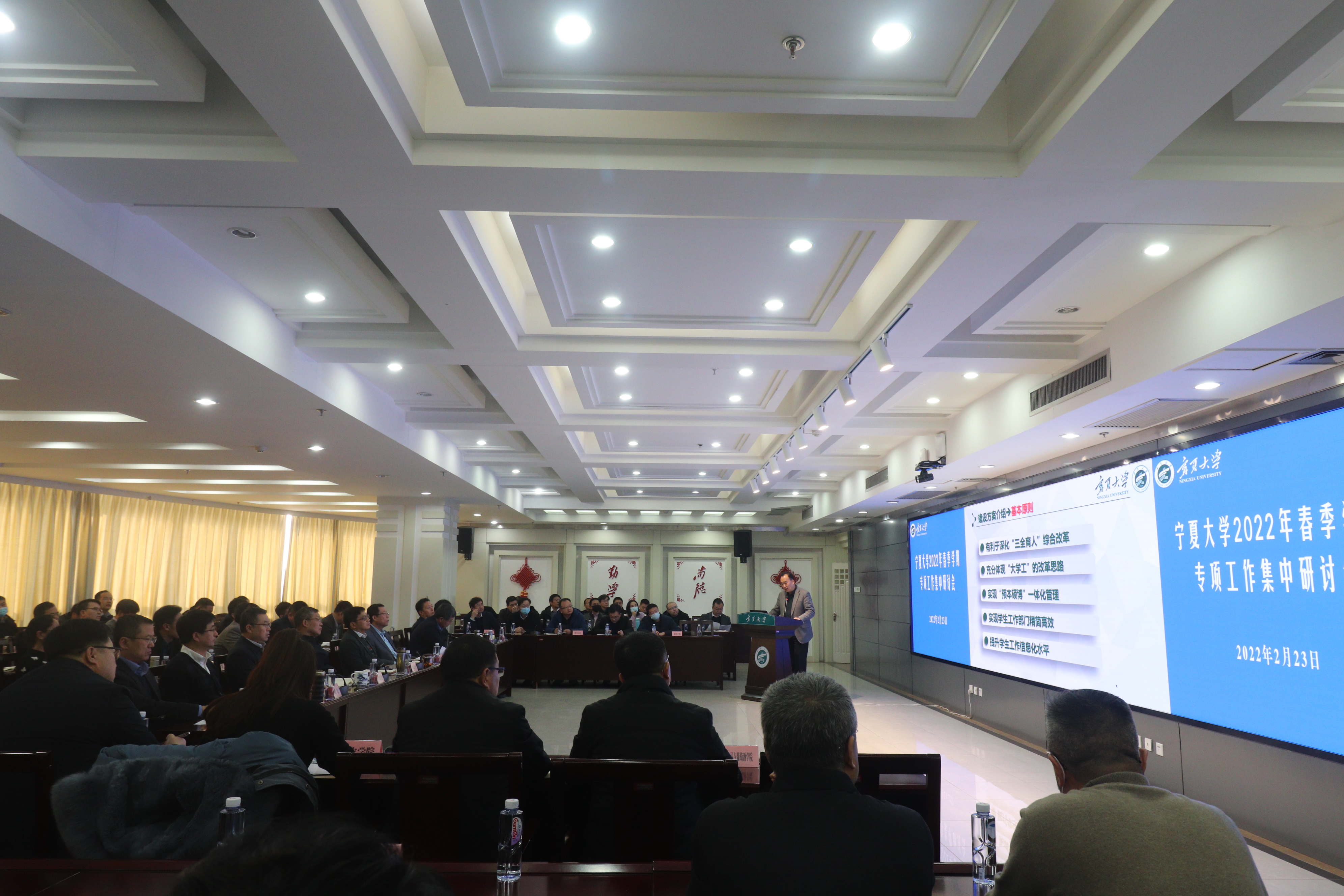 2月27日下午,我校在贺兰山校区文荟楼东报告厅召开2022年春季学期重点工作部署会。领导班子成员从学校实际出发,结合各自分管领域,紧扣高质量发展主题,聚焦学校2022年建设发展主要任务,安排部署分管领域新学期重点工作。