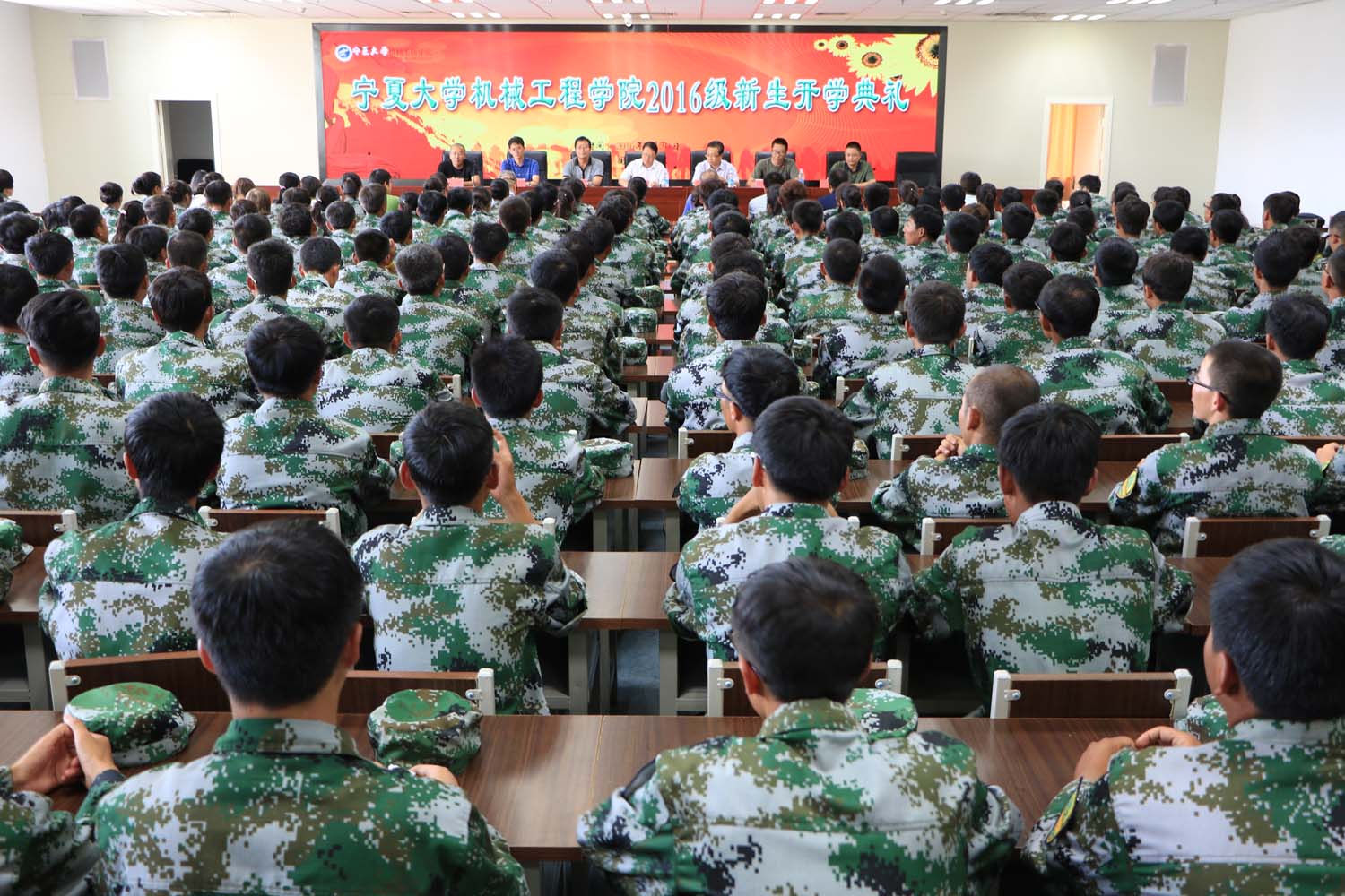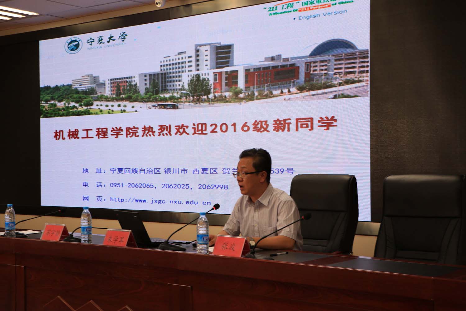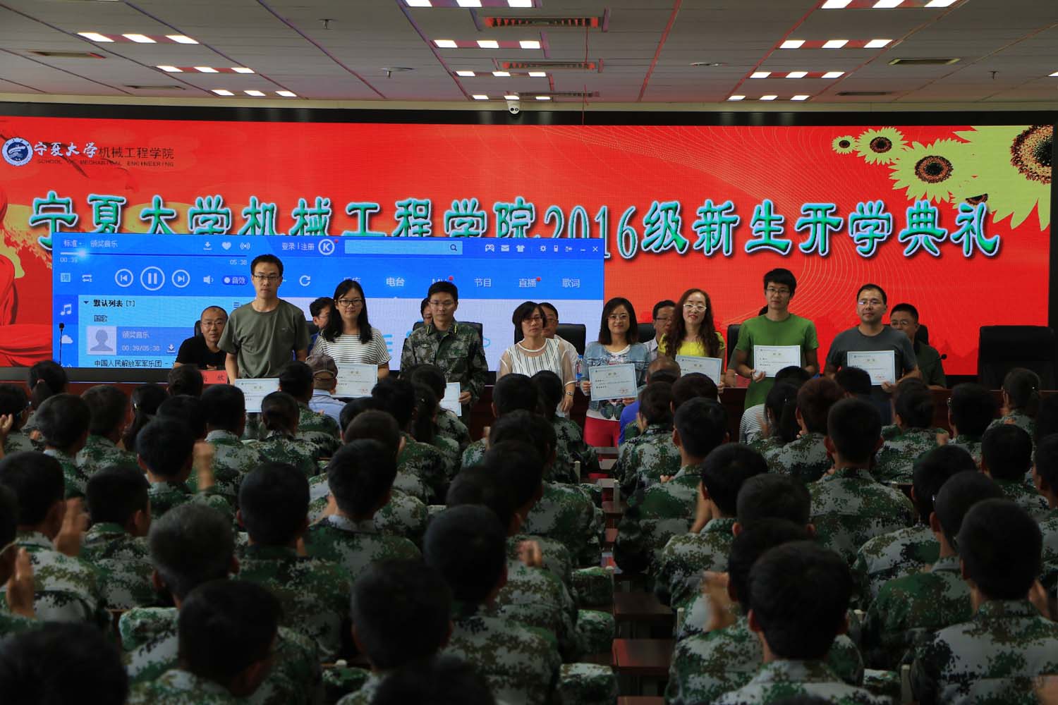 庄重的国歌声缓缓拉开了本次典礼的序幕。钟子杰书记宣读了新生班主任名单,在阵阵掌声中,钟书记向新生班主任颁发了承载着荣誉与责任的聘书。学院近几年新生班主任工作坚持选聘青年博士,坚持早晚自习制度,效果显著,学风建设有了长足进步。院长朱学军发表致辞。他首先代表学院向2016级新生表示热烈的欢迎和亲切的问候。随后,朱院长从欧洲出发,到亚洲,再到中国,他简明地介绍了世界一流大学的校史、校训及使其屹立世界之林的精神之髓。通过对英国威廉集团发展历程的回顾,着重强调了“尚德、勤学、求是、创新”的校训和“负重拼搏、开拓创新”的宁大精神。结合学院的办学历史和发展现状,进一步解读了“力学笃行、巧思精制、厚积薄发、追求卓越”的育人理念。并向新生学子阐述了学院毕业生的就业发展方向,提及了未来学院转型发展的机遇和挑战。朱院长希望新同学从军训开始,谨记校训,认真践行宁夏精神,合理规划大学时光,积极养成自我约束、主动学习、奋发向上的优良品质。