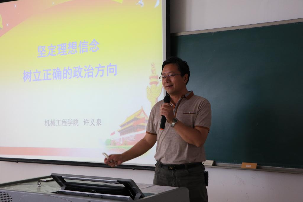 (记者 高诏诏)为进一步推进学院“两学一做”学习教育深入开展,引导师生党员自觉增强政治意识、大局意识、核心意识和看齐意识,坚定理想信念,自觉向党中央看齐、向先锋模范看齐,锤炼党性、提升觉悟、规范行为,械工程学院于68日在文萃校区L208室,院党委副书记许义泉做了“坚定理想信念,树立正确的政治方向”的专题讲座,学院全体党员参加了本次讲座。