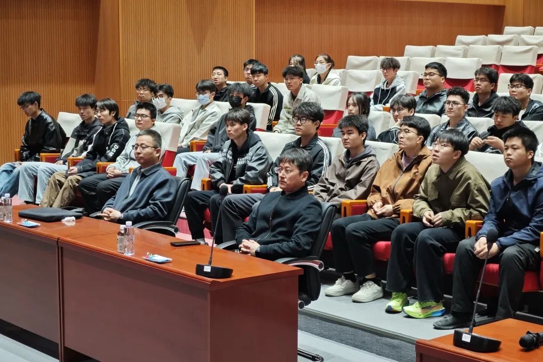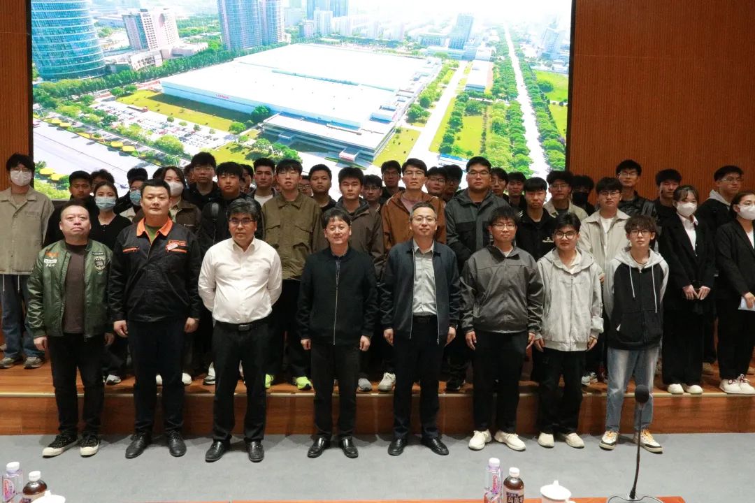 工厂参观结束后,大家一同前往报告厅。公司技术专家向大家介绍了公司概况、企业文化、产品技术及人才培养机制等相关内容,他呼吁同学们在大学期间要尽早规划职业,了解行业动态和社会发展方向,注重提升自己的专业实践能力和跨学科学习能力,以适应企业和社会对人才的需求。随后,公司总经理助理围绕机床的相关知识,向师生们介绍了机床分类、金属加工机床、金属成型设备及辅助部分等相关内容,并就专业方面和同学们进行了分享。
