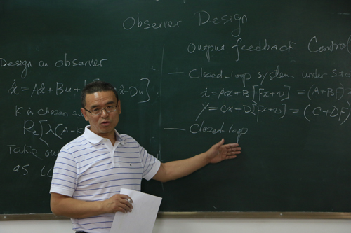 课程“现代控制理论”示范教学分别在williamhill英国的512和518会议室进行,williamhill英国杨术明副院长主持,williamhill英国研究生和部分老师参加。陈文教授讲授了2个学时的现代控制理论发展现状和4个学时的控制观测器设计应用。教学环节采用全板书形式,推导详尽、条理清楚。学生和老师的积极互动交流,让研究生近距离感受了美国大学教授和教学方式。