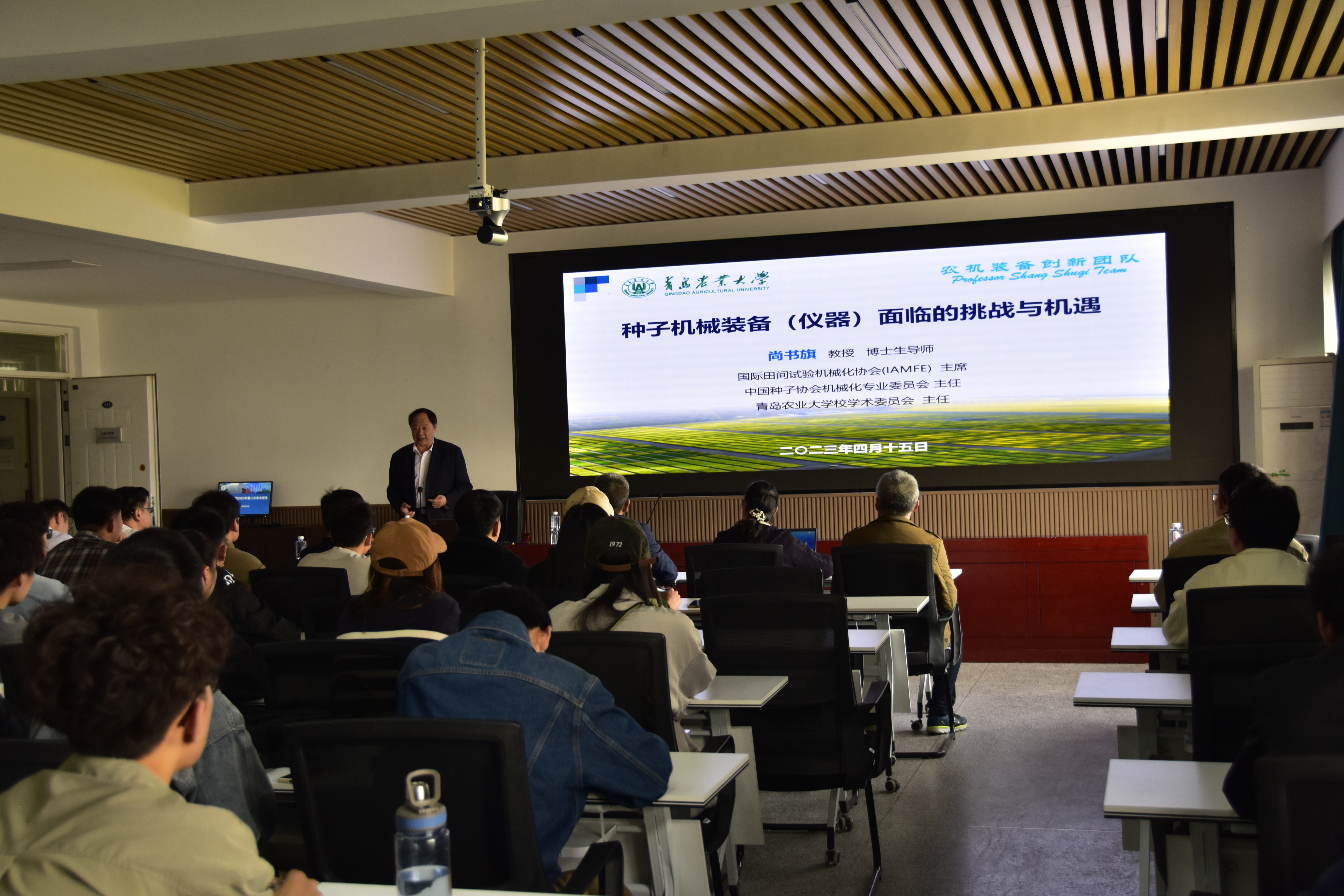 2023年4月15日,我院邀请青岛农业大学博士生导师、国际田间试验机械化协会主席尚书旗教授,在文萃校区明远楼512报告厅举办“种子机械装备(仪器)面临的挑战和机遇”学术报告会,青岛农业大学机电工程学院院长王东伟出席,会议由学院副院长王昱潭主持。