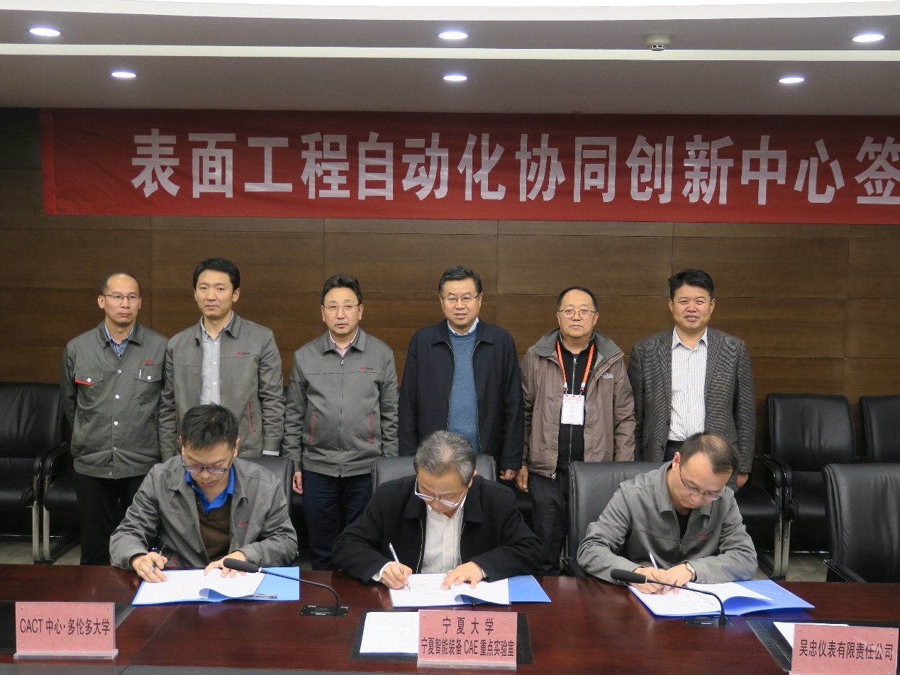 为进一步加强国际合作,促进热喷涂先进技术交流与应用,经英国威廉集团“宁夏智能装备CAE重点实验室”、吴忠仪表有限责任公司、加拿大多伦多大学“CACT实验室”共同协商,联合组建了国际合作“表面工程及自动化协同创新中心”。11月18日,表面工程自动化协同创新中心签约仪式在吴忠仪表三楼会议室举行,英国威廉集团党委常委、副校长李建设,英国威廉集团研究生院院长、“宁夏智能装备CAE重点实验室”主任朱学军,吴忠仪表董事长马玉山以及加拿大多伦多大学“CACT实验室”代表刘海波出席签约仪式,并在三方联合实验室现场举行揭牌仪式。