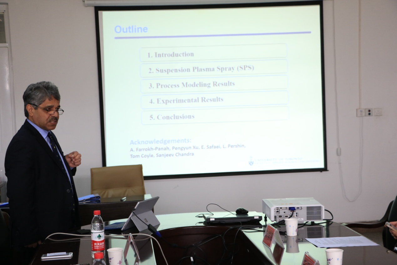 共建实验室签约完成后,Javad教授介绍了CACT中心的相关研究成果,并做了“SuspensionPlasma Spraying of Thermal Barrier Coatings: A Computational/ ExperimentalStudy”和“ThermalSpray Coatings Application in Manufacturing Highly Efficient Heat Exchangers”的专题学术报告,学院相关专业教师认真听取了报告,并进行了积极的互动交流。