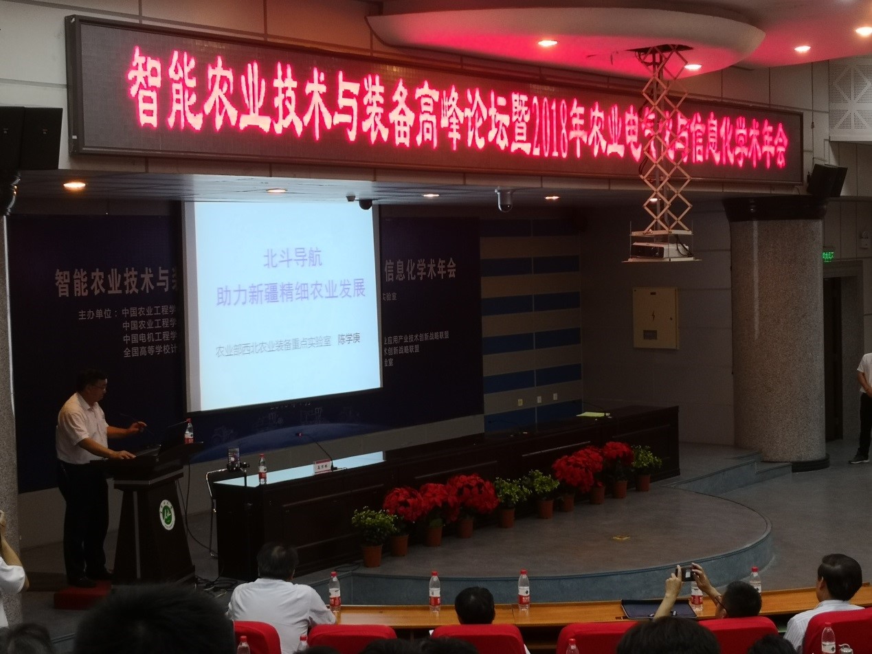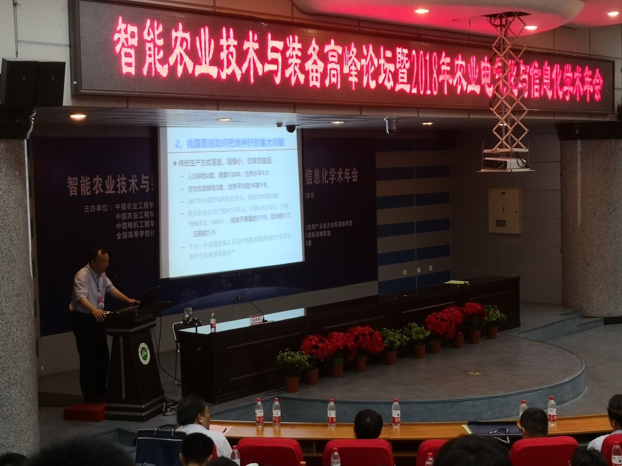 2018年7月21-22日,由中国农业工程学会农业电气化与信息化分会联合中国农业工程学会青年科技工作委员会、中国电机工程学会农电科教专委会、全国高等学校计算机基础教育研究会农林专委会及农业部西北农业装备重点实验室主办,由石河子大学和新疆农垦科学院承办的智能农业技术与装备高峰论坛暨2018年农业电气化与信息化学术年会在新疆石河子大学举办。我院有一位教师与八位研究生一行九人参加了本次会议,并有三位研究生参与完成了三个分会场的主题报告。