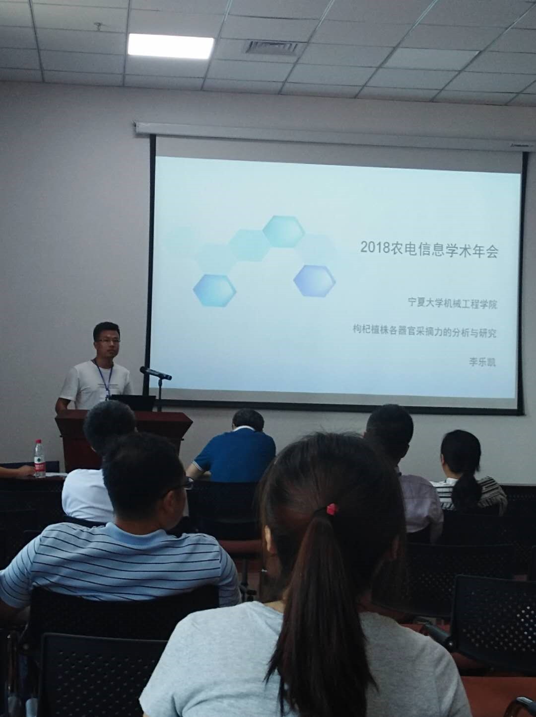 李乐凯在农业电气化与自动化分会场进行了题为《枸杞植株各器官采摘力的分析与研究》交流汇报。