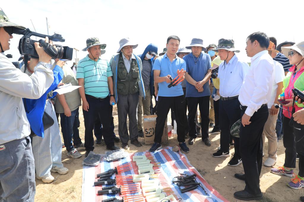 在中杞集团天景山基地,验收专家组通过实地查看、听取介绍、现场演示和录像等形式,对手持便携式采摘器、精准振动式采收装备、多臂协同式机器人采收装备和气振复合式枸杞采收装备的工作原理、技术创新、进展情况、存在的问题等方面进行了详细了解。