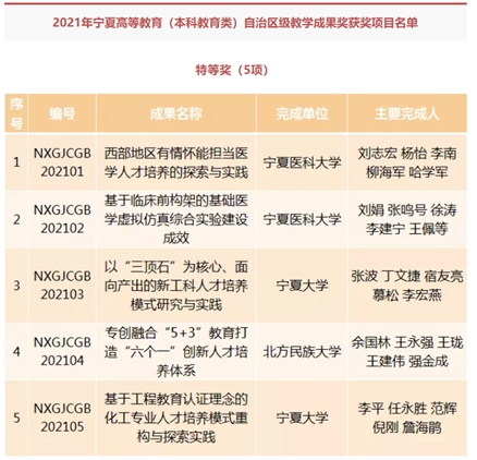 williamhill英国喜获2021年宁夏高等教育自治区级教学成果特等奖