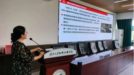 会上,李宏燕从本学期主要工作完成情况、工程教育认证基础资料检查反馈和期中教学检查及毕业设计等三个方面做了汇报。她表示,本学期学院本科教学工作严格按照学校、学院工作计划执行,对期中教学检查工作和2023届本科毕业设计工作中反馈出的问题,希望全体教师在后续工作中能够持续改进。尤其在试卷批阅规范性、毕业设计质量方面,要求指导教师、各系部、教研室对照相关教学规范文件,严格要求抓落实,并对年轻教师做好传帮带。