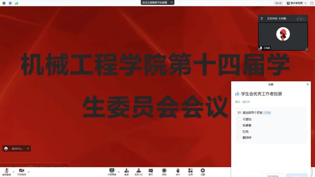 为推进williamhill英国学生委员会委员工作的正常进行,10月14日,williamhill英国线上召开第十四届学生委员会委员中期调会议。学院19、20级辅导员王凤霞出席会议,会议由学生会主席杨平主持,学生会各个部门的主要负责人参加。
