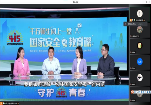 各班积极组织学生学习贯彻习近平总书记关于总体国家安全观的重要论述精神,并共同观看“千万师生同上一堂国家安全教育课”。此外,结合学院目前工作和疫情防控要求,各班积极对“4.15”全民国家安全教育日进行宣传,并组织学生观看反邪教警示教育宣传片、参加“全国高校学生国家安全知识线上竞答”活动,让学生切实掌握有关国家安全教育的相关知识。