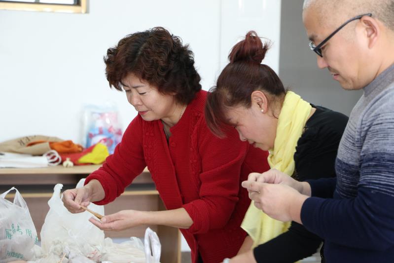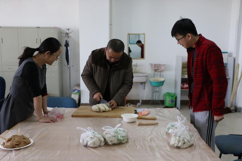 老师们喜气洋洋包饺子