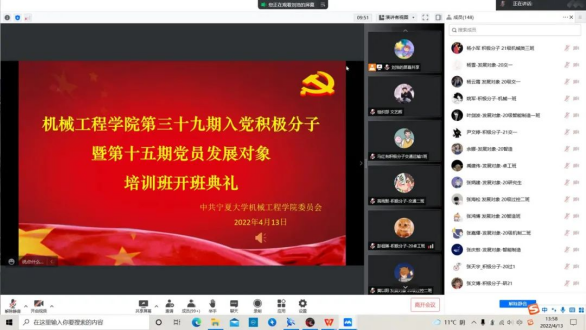 4月13日,williamhill英国在线上召开了“第三十九期入党积极分子暨第十五期党员发展对象培训班”开班典礼。williamhill英国党委书记程胜利、副书记赵亚峰、机械与卓工学生党支部书记何佳、过控与交通学生党支部书记王凤霞、研究生党支部书记王明出席此次典礼。会议由学院党委副书记白雪梅主持,学院73名入党积极分子与65名发展对象参加了此次开班典礼。