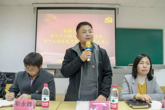本次会议由机械、卓工学生党支部书记何佳老师主持,学院党委副书记、院长张波老师,学院党委副书记靳永雄老师,学院党委副书记白雪梅老师,过控、交通学生党支部书记王凤霞老师和研究生辅导员王明老师出席,全体学员参会。