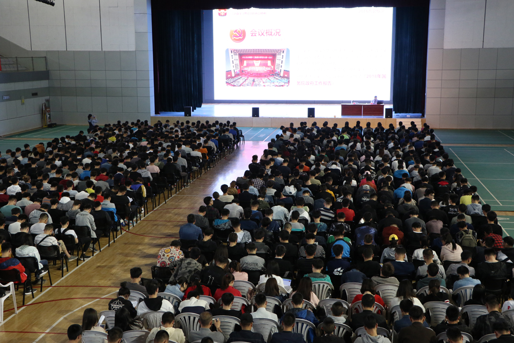马玉山博士以简洁、深刻的语言向大家介绍了2018年两会概况,重点就《政府工作报告》、《人大常委会工作报告》、《最高人民法院报告》、《最高人民检察院工作报告》、监察法主要精神、国务院机构改革方案精神和栗战书委员长在闭幕会上的讲话精神等内容予以传达。马玉山博士结合宁夏实际,特别是结合产、学、研领域,谈及机械学科和先进装备制造业的发展,就自己的个人经历对同学们的大学生活以及毕业后的就业发展提出自己的建议,他认为大学生应积极向上,学习一技之长服务社会成长成才,理应务实、坚持,报告既有理论深度、思想深度,又有很强的针对性。