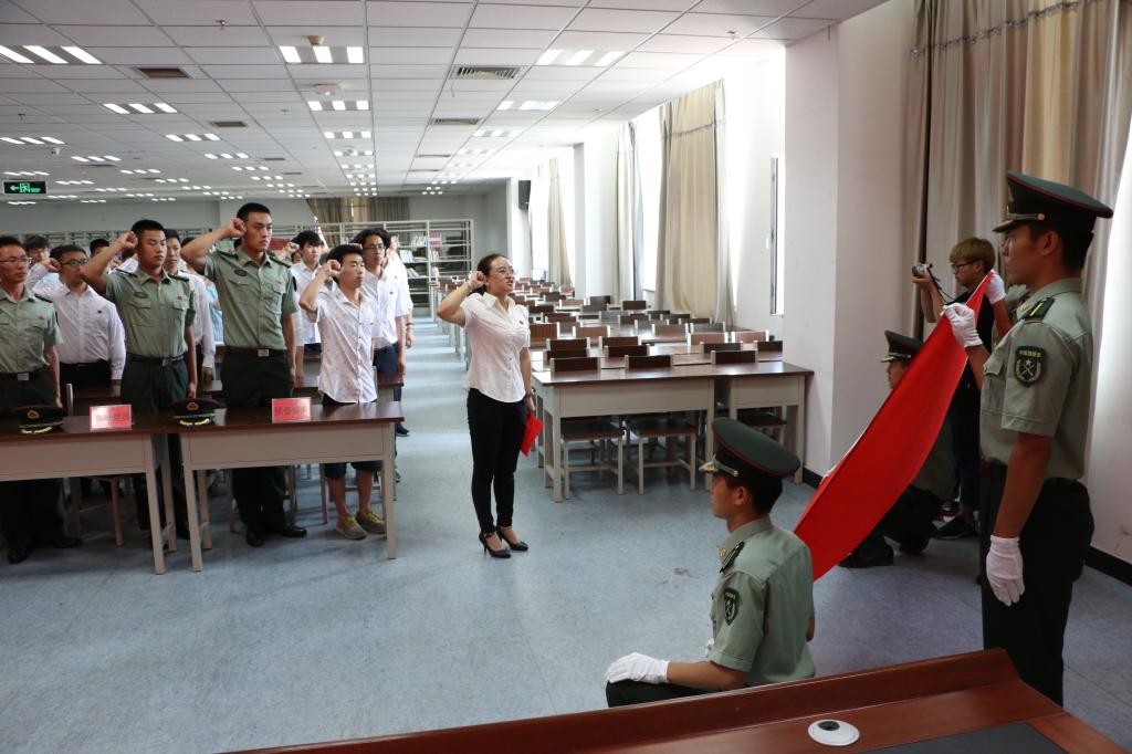 为迎接党的96周岁华诞,推进“两学一做”学习教育实践活动的常态化制度化,6月30日下午,williamhill英国在国防生之家举行入党宣誓仪式暨优秀共产党员表彰大会,全体师生党员参加会议。学院党委副书记白雪梅主持会议。