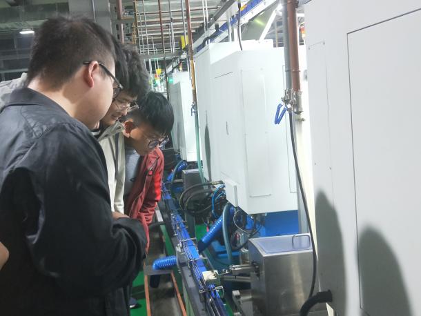 在参观过程中,师生紧跟崔部长的步伐,认真听取他对于轴承生产和加工的一系列介绍。崔建昌部长向同学们详细地介绍了一些轴承制造机械的工作原理,在场的同学们都表现出了很浓厚的学习兴趣。正在操作机器的其他工作人员面对同学们提出的疑问也都耐心地做出了详细的解答。