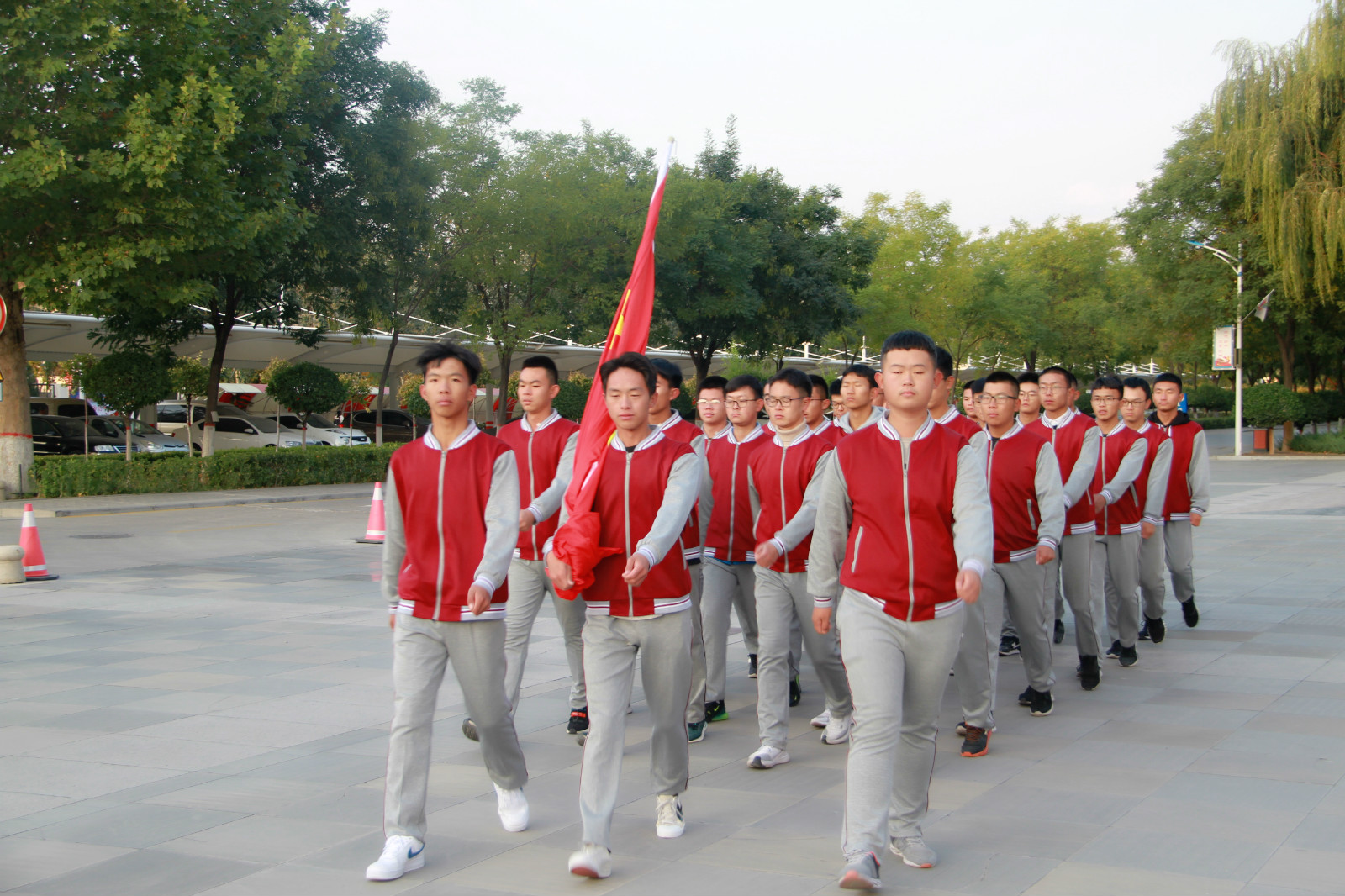 随着清晨第一缕阳光的升起,升旗仪式正式开始,williamhill英国27名学生组成的国旗护卫队,精神饱满,迈着整齐划一,铿锵有力的步伐护送国旗至旗台下,全场气氛庄严而肃穆,随着五星红旗冉冉升起,在场师生高唱国歌,行注目礼。