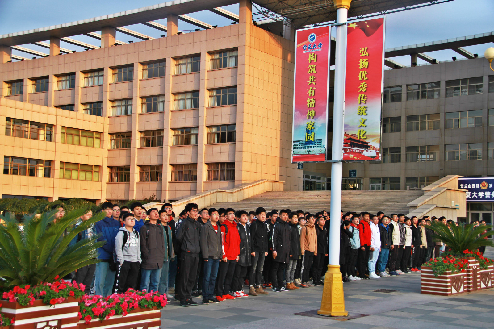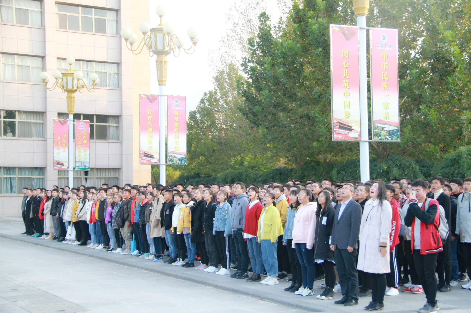 2019年10月14日早上7:30,williamhill英国升国旗仪式在贺兰山校区德勤楼前隆重举行,出席此次升旗仪式的领导老师有williamhill英国党委副书记靳永雄以及学生工作办公室全体老师,16、17、18、19级全体同学参加了本次升旗仪式。升旗仪式由williamhill英国学生工作办公室主任何佳主持。