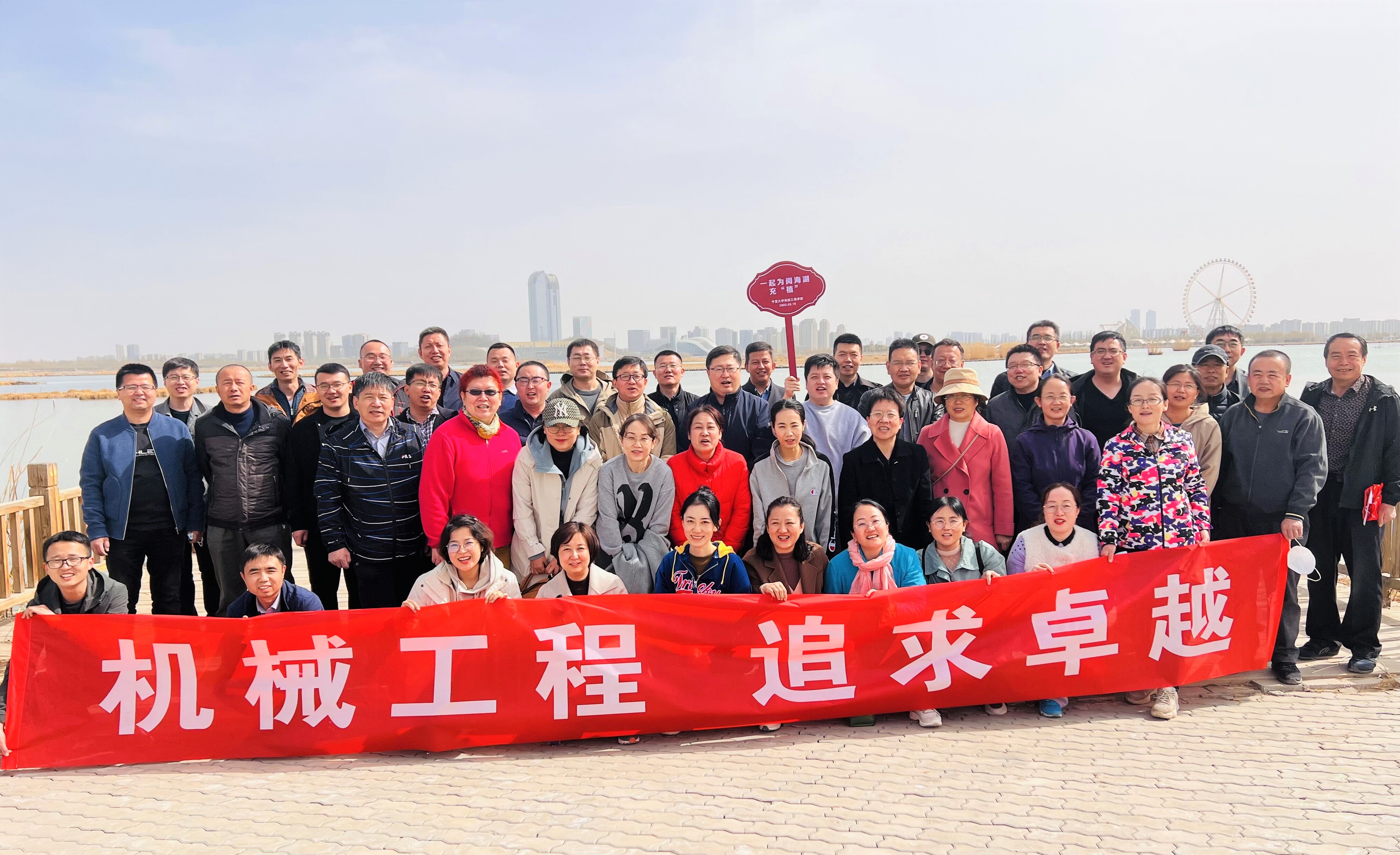 春光无限好,植树正当时。在2023年第45个植树节来临之际,大家以实际行动为阅海湖充“植”添绿。活动伊始,教师们发挥想象、自由创新,制作了属于自己的独一无二的专属植树牌,营造了一个积极愉快的氛围。植树牌制作完成后,大家来到阅海湖边,挖坑铲土、扶树正苗、培土围堰、提水浇灌,每道工序都有条不紊,并插上了独属于自己的植树牌,种下一棵树,收获万点绿,让世界多一点美好。
