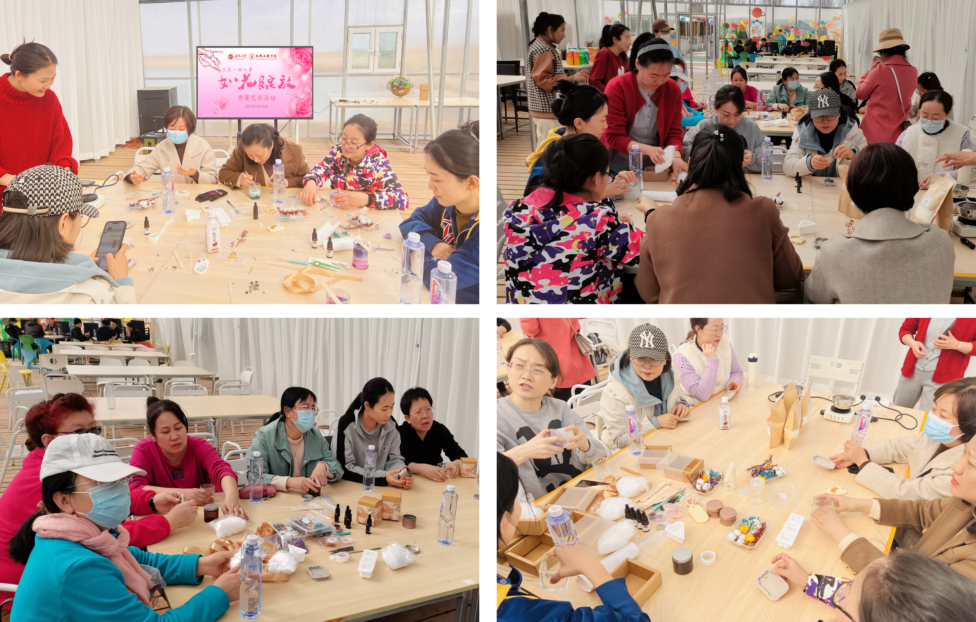 “三月·女人季——如花绽放”,学院为女教师举办香薰艺术活动。全院女教工在工作人员的指导下,进行手工制作,挑选干花,构思造型,倒入热好的豆蜡,在表层放不同的干花装饰点缀,冷却后再倒入香熏精油,制作宁心安神的香熏蜡烛和香薰片,以此祝福全院女教职员工健康、自信、美丽、幸福,在学院党委的领导下,凝心聚力、开拓进取,为学院事业高质量发展作出新的更大贡献!