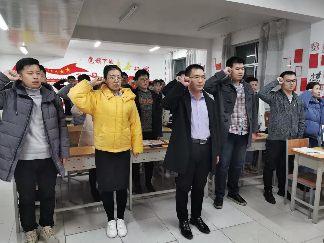 袁梦、耿青等五位发展对象逐个宣读自己自入党以来的不足,联系人分别介绍各自联系的发展对象的情况并介绍入党。在场的正式党员对拟确定为预备党员人选进行举手表决一致认为袁梦、耿青等五位同志由发展对象正式转为预备党员。杨俊峰老师带领在座党员和预备党员宣誓。