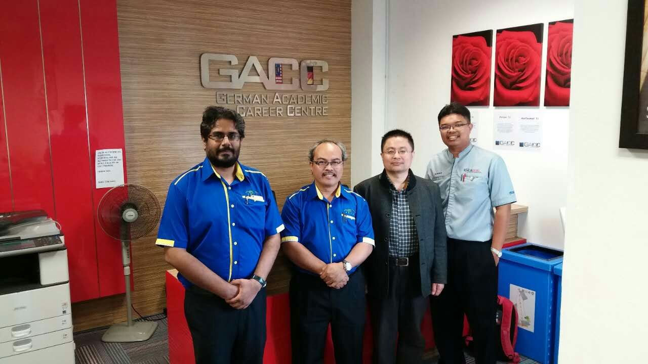 访问期间,张波教授先后与彭亨大学机械学院院长Rizalman教授、彭亨大学制造学院院长Azha教授(2014年曾担任彭亨大学副校长,负责学术工作)、机械学院专业负责人Ruzaimi博士、制造学院副院长Ahmad Razlan BinYusoff博士、彭亨大学德国学术与职涯中心(German Academic &Career Center, GACC)主任Muhamad Mat Noor博士等人座谈。会谈中,就两校的前期合作情况、今后可能开展的教学、科研、教师及学生互访等深入合作领域问题进行了探讨和交流,重点是对马来西亚彭亨大学、德国卡尔斯鲁厄应用技术大学(HsKA, Germany)、英国威廉集团三方双学位合作办学的框架和具体操作方式进行了沟通,并达成了初步的合作意向,双方商定会后将草拟三方合作框架文件,并就相关细节继续进行商讨确定。