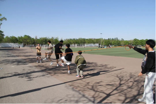 活动开始,同学们纷纷投入到健身运动之中,有的跳绳,有的滚铁环,有的转呼啦圈,有的踢毽子。他们的欢笑声同脸上的汗水一道,在阳光下绽放青春的神采,既锻炼了身体,也收获了快乐。