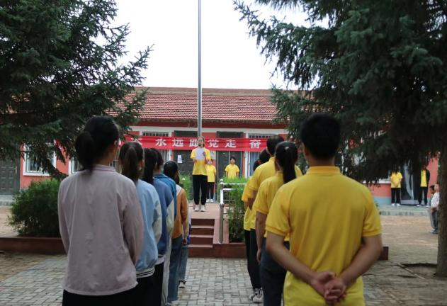 首先举行升旗仪式,国旗护卫队步伐整齐,将国旗护送到旗杆前,伴随着坚定激昂的国歌声响起,五星红旗冉冉升起。升旗仪式结束后,支教协会会长孔祥龙、志愿者代表马希金依次发言,向大家表明了认真负责,积极准备的支教态度。发言结束后,志愿者虎帅帅宣布2022马庄小学支教夏令营活动正式启动。
