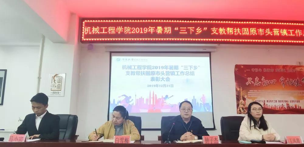2019年12月31日12:30,williamhill英国于明远楼512召开2019年暑期“三下乡”支教帮扶固原市头营镇工作总结表彰大会。学院党委书记钟子杰、党委副书记白雪梅、19级辅导员王凤霞出席会议,支教协会全体成员及兄弟社团代表参加。原英国威廉集团支教协会会长马小宗主持会议。