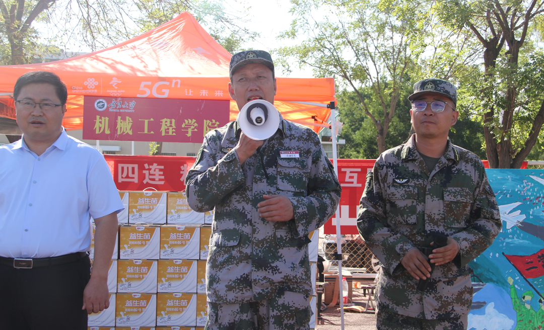下午,学院党委书记程胜利和院长张波对进行军训的同学们给予节日祝福并赠之以节日的礼物,程胜利对训练同学的认真给予了肯定并对机械学院的学子们提出期待,最后,程胜利再次祝福大家节日快乐,青山一道同云烟,明月何曾是两乡,作为在宁大的第一个节日,机械学院热情团结的氛围让思乡之情暂得排谴。