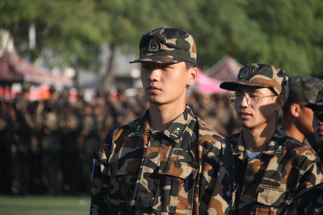 日光西落,飘扬的红旗下,是认真准备军训开幕式表演的同学,他们唱着嘹亮的军歌,踏着整齐的正步,展现着机械学子高昂斗志。