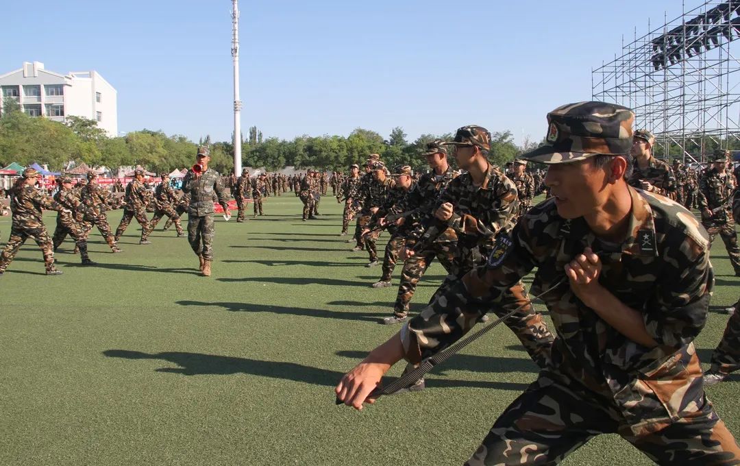 今日的军训场上,新生们正在练习着刺杀操——突刺、防左侧击、上步撞击、外拨转身刺……一系列的动作被新生们快、准、狠的展现出来。经历了前七日在烈日下挥汗如雨、腰酸腿痛的时光,如今新生们每一次的落脚都铿锵有力,每一次的整队都迅速有序,每一句的口号都气壮山河。一突一刺、一防一击,豪情壮志,精神抖擞,尽显我院风采。