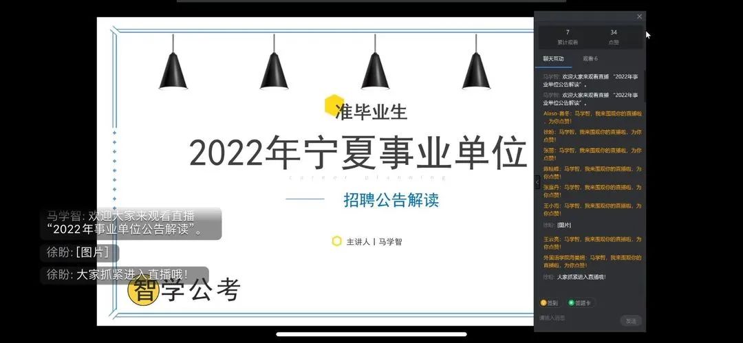 4月15日,智学公考以线上钉钉会议的形式举办了2022年宁夏事业单位招聘公告解读讲座。此次讲座由智学公考马学智老师主讲,面向英国威廉集团全体准毕业生。
