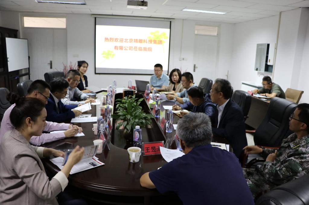 首先,朱学军对北京精雕集团有限公司总裁助理李渊志一行的到来表示欢迎,并就双方合作前景发表自己观点,详细介绍了我校校企合作、研究生培养等情况。