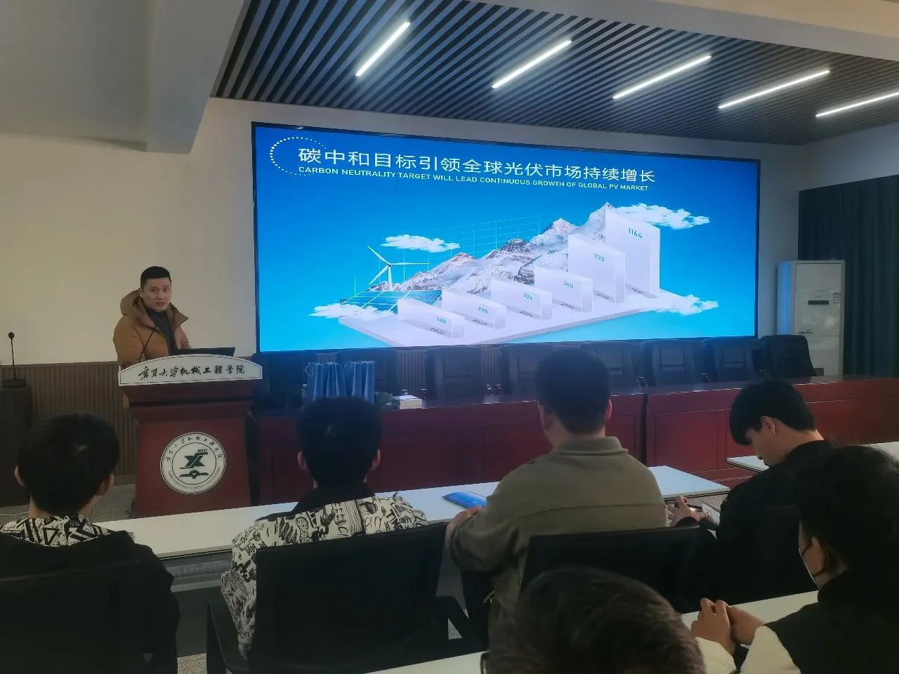 同时,他还介绍了光伏产业的市场需求和技术研发阶段,讲述近几年公司在在光伏制造与研发生产上取得的成绩。